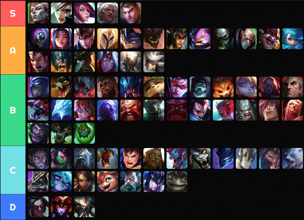 Irelia has been replaced with Zaahen in the S tier. Currently, this champion is straight up overtuned – if you are good on it, there is no unplayable matchups (though he does appear to struggle into Jax and champions that can kite him – ranged).