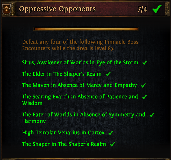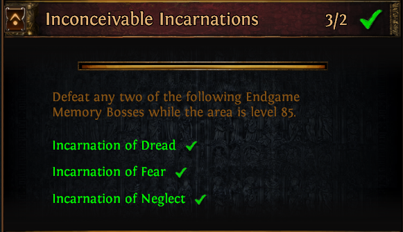 In terms of difficulty, Incarnations of Fear & Neglect, Cortex (with easy mods) and Uber Uber Elder felt by far the easiest to beat on this list. Next, I took on uber Shaper, Incarnation of Dread and Eater without much struggle, though Dread felt much harder compared to the normal variant of the boss.